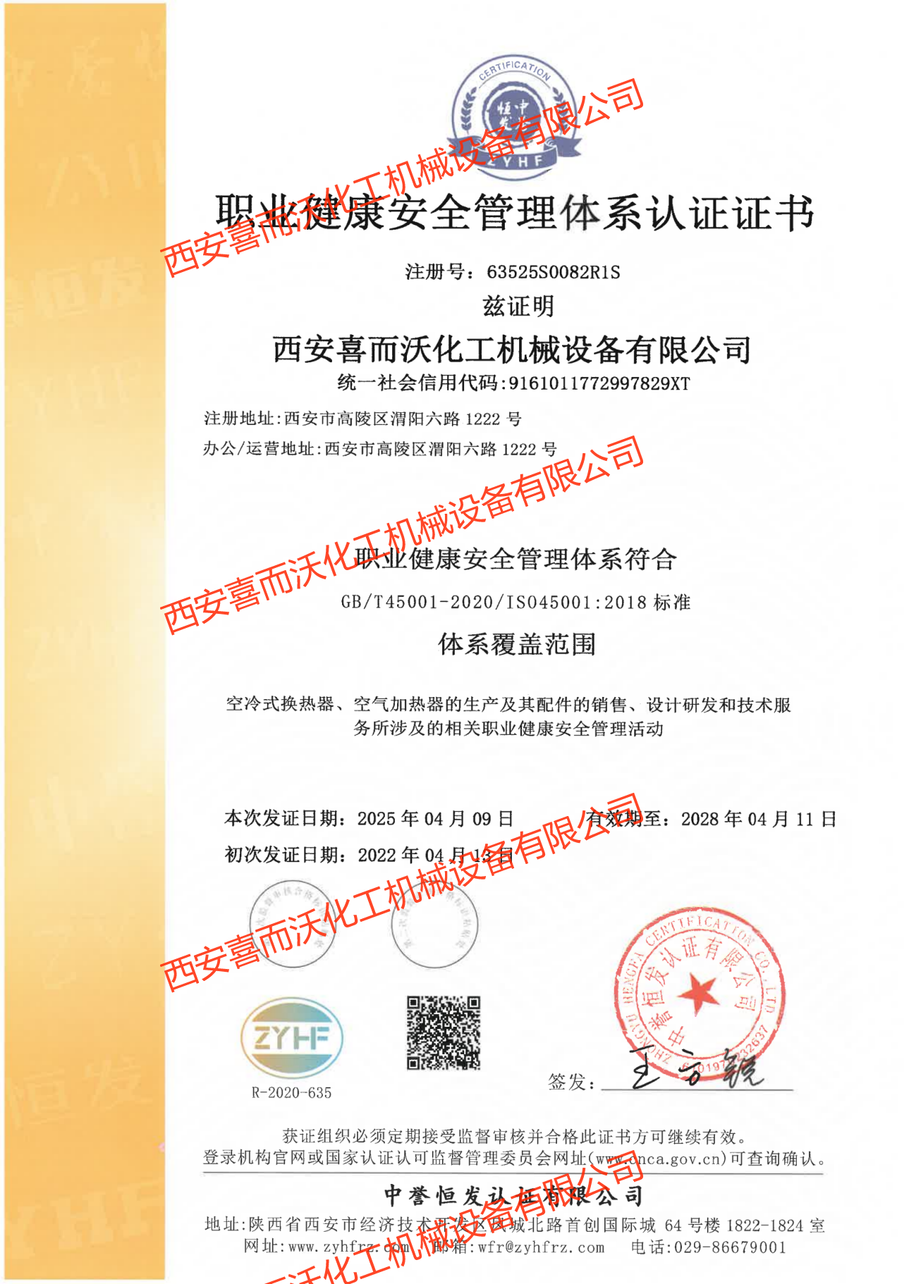 職業(yè)健康安全管理體系管理認(rèn)證證書